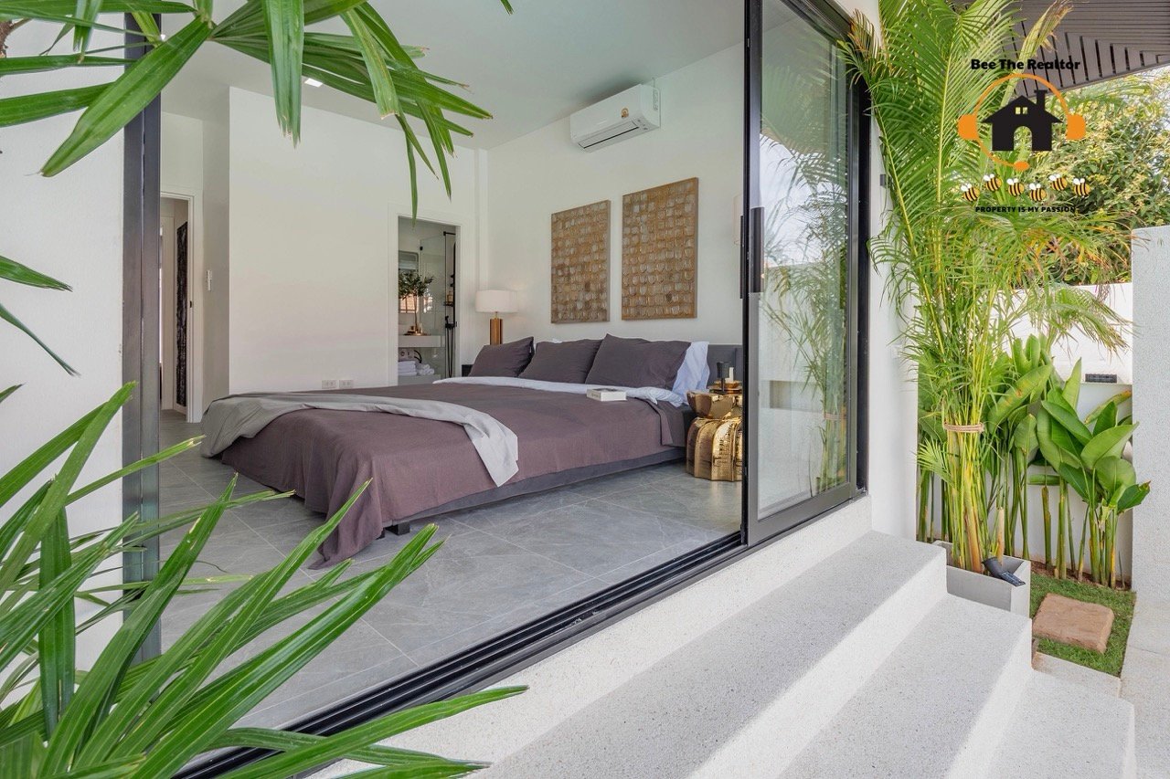 • 5 ห้องนอน — ทุกห้องมีห้องน้ำในตัว และประตูเปิดสู่สวน